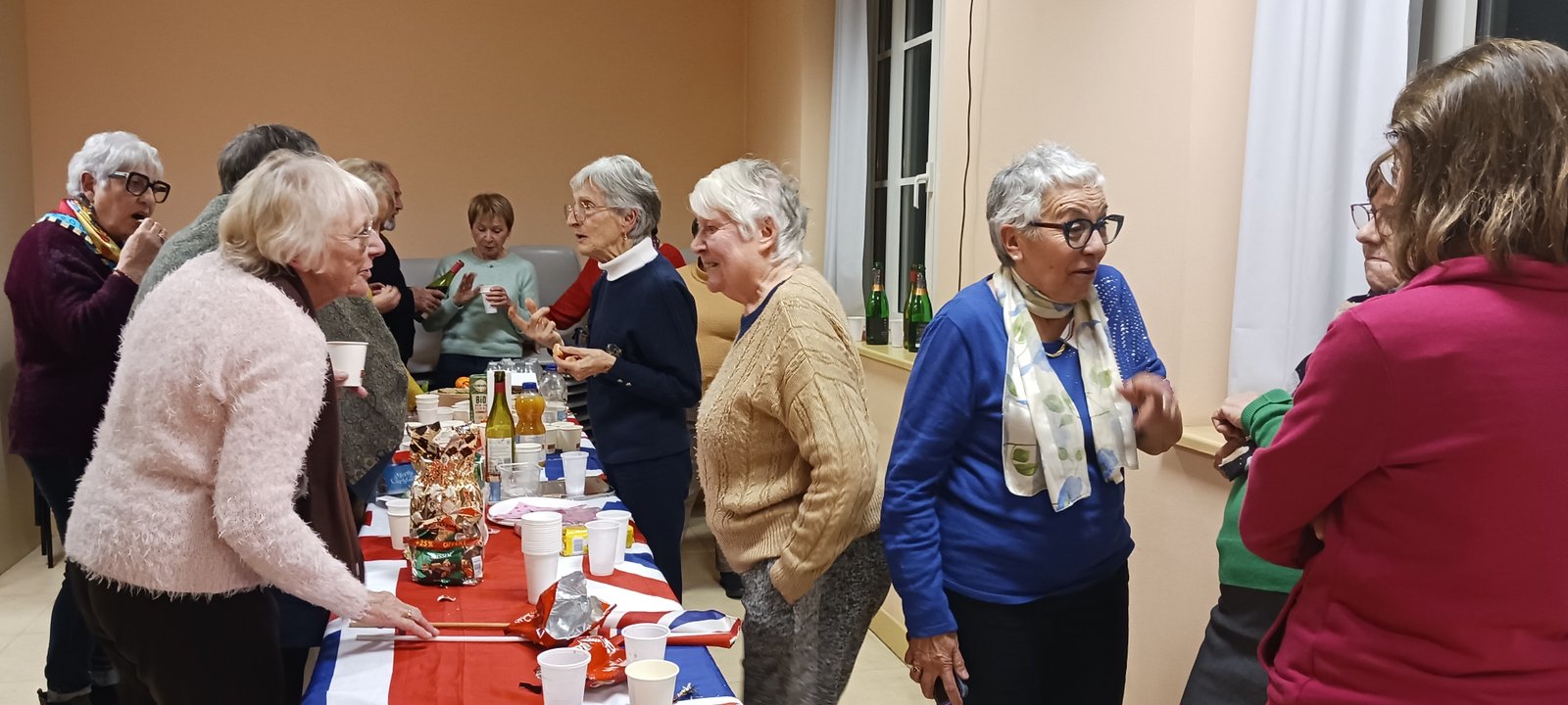 Les participants ont été sollicités pour poser leurs questions et donner leurs avis sur la mise en place des deux nouvelles activités proposées en 2026 : ‘un thé chantant’ que nous organiserait un nouvel adhérent et un ‘défi Scrabble en anglais’. Les conversations ont allègrement continué autour du buffet offert par FGB. Le ‘Beaujolais Nouveau’ a été jugé meilleur que celui de l’an passé !
